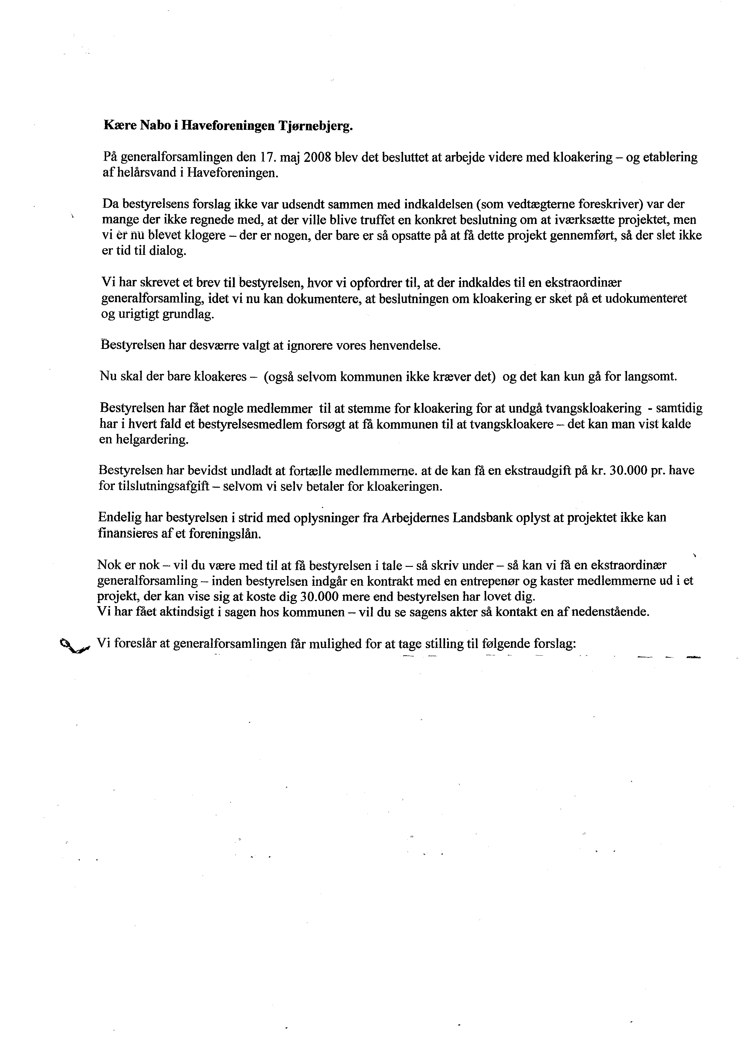 Tak for jeres brev og interesse for vores kloakering og nye vandledningsnet som blev vedtaget på generalforsamlingen 2008.